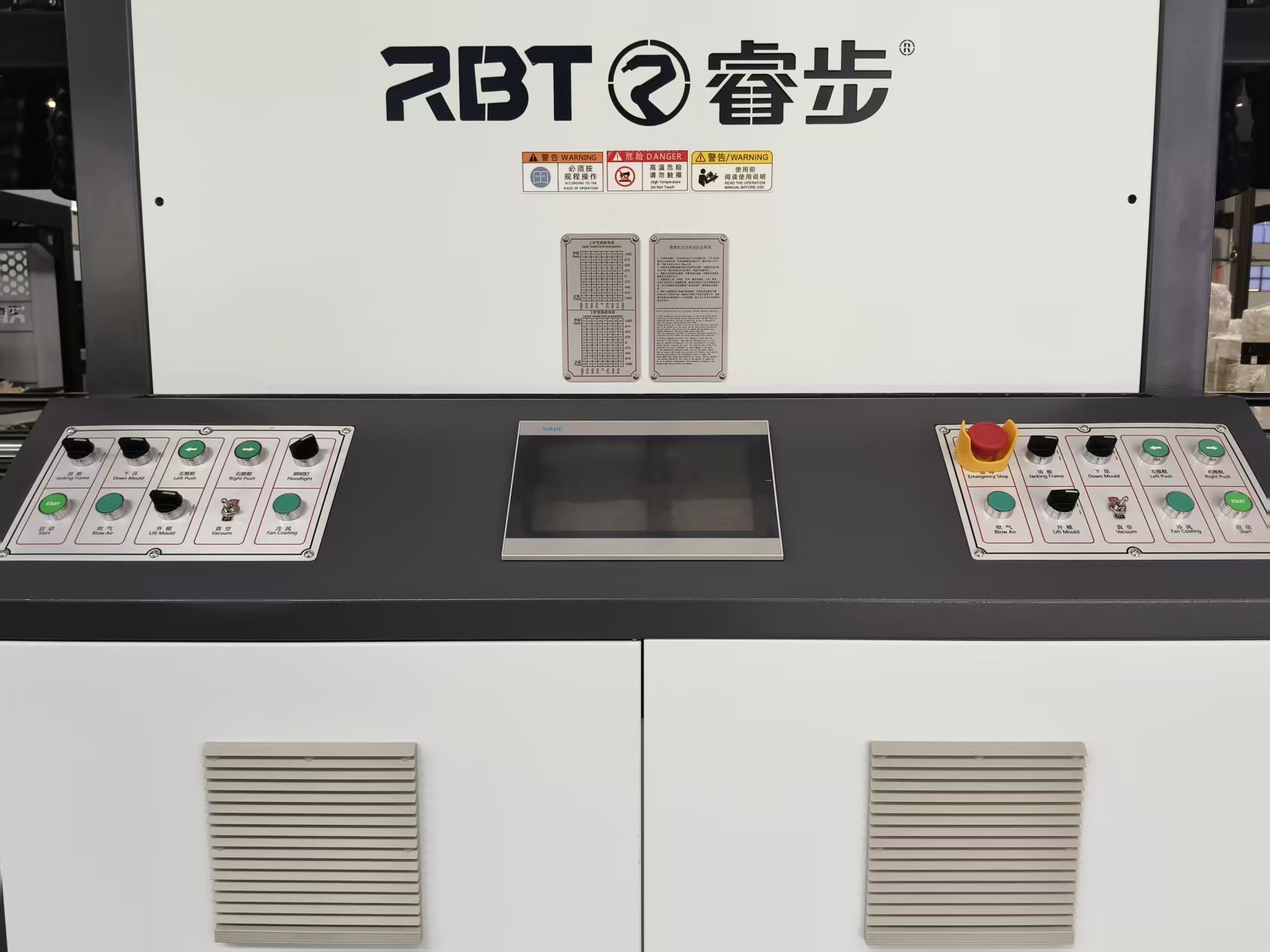 Der Formaustauschvorgang ist einfach und erfordert lediglich die Demontage und Montage der Installationsstreifen auf der Basisplatte für die Forminstallation. Die Aluminiumformen fallen bei Stromausfall nicht herunter und können direkt auf der Grundplatte installiert werden. Die Kühlsysteme am linken und rechten Arbeitsplatz nutzen vier hocheffiziente Radialventilatoren mit einstellbaren Auslasswinkeln, wodurch die Kühleffizienz erheblich gesteigert wird.
